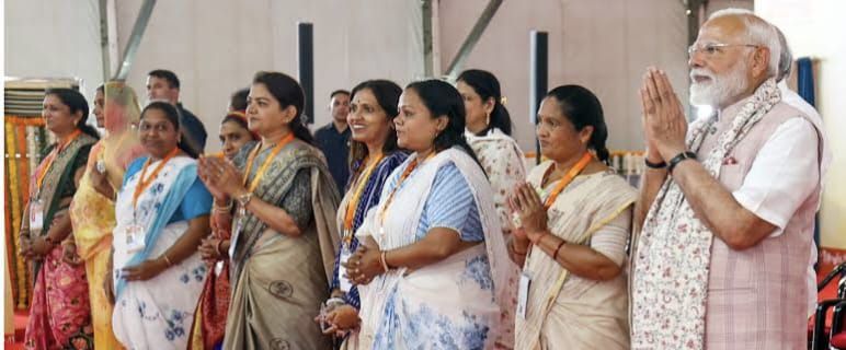 #WATCH | Gujarat: Prime Minister Narendra Modi interacts with Lakhpati Didis in Navsari.
