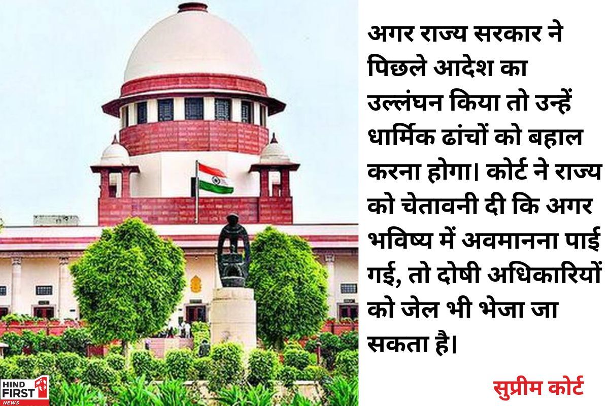 सुप्रीम कोर्ट ने शुक्रवार को स्पष्ट किया कि अगर उसे ऐसा लगता है कि गुजरात के अधिकारियों ने बुलडोजर कार्रवाई पर उसके आदेश की अवमानना की है, तो वे न केवल जेल भेजे जाएंगे, बल्कि उन अधिकारियों को उन संपत्तियों को फिर से बनाने का भी आदेश दिया जाएगा। यह टिप्पणी जस्टिस बीआर गवई और जस्टिस केवी विश्वनाथन की बेंच ने की, जो कि सोमनाथ मंदिर के पास अवैध निर्माणों पर 28 सितंबर को हुई बुलडोजर कार्रवाई के खिलाफ दायर अवमानना याचिका की सुनवाई कर रही थी।