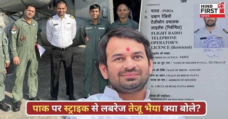 जब भारतीय वायुसेना के वीर जवानों ने पाकिस्तान के आतंकी अड्डों को ध्वस्त किया, तो पूरा देश गर्व से सीना तान कर खड़ा हो गया। इसी जोश में RJD नेता तेज प्रताप यादव ने एक ऐसा बयान दिया जिसने सबका ध्यान खींचा कि"अगर मेरी पायलट ट्रेनिंग देश के काम आ सके तो मैं हर समय तैयार हूं... मेरी जान भी चली जाए तो खुद को धन्य समझूंगा!" सोशल मीडिया पर अपने फ्लाइट रेडियो ऑपरेटर लाइसेंस की तस्वीर शेयर करते हुए लालू यादव के बेटे ने देशभक्ति की नई मिसाल पेश की।