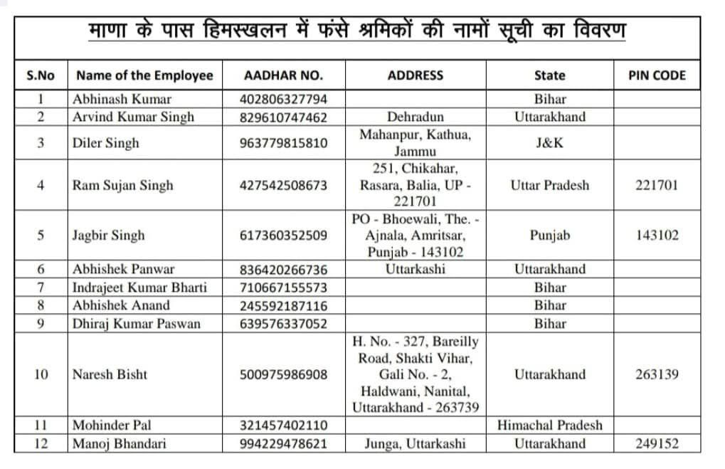 उत्तराखंड के मुख्यमंत्री पुष्कर सिंह धामी ने माणा के पास हुए हिमस्खलन में फंसे श्रमिकों को बचाने के लिए चल रहे राहत एवं बचाव कार्यों की जानकारी ली। उन्होंने अधिकारियों को निर्देश दिया कि जो श्रमिक गंभीर रूप से घायल हैं, उन्हें बेहतर इलाज के लिए एयरलिफ्ट कर हायर सेंटर भेजा जाए।