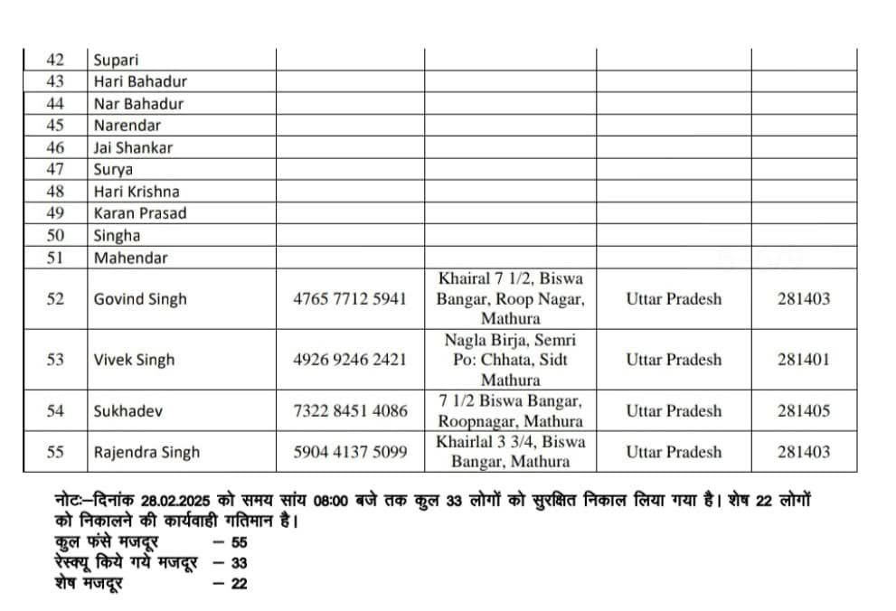 14 और मजदूरों को सुरक्षित बाहर निकाला