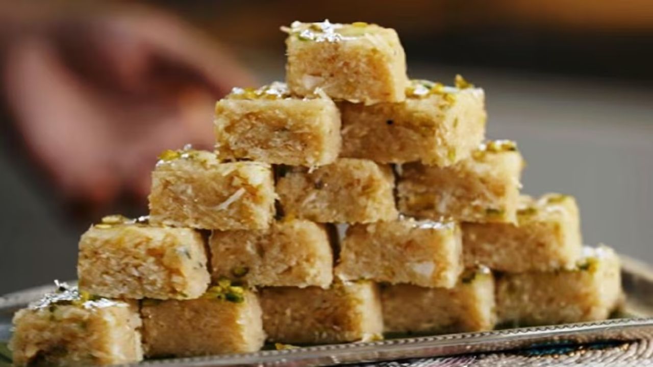 कद्दूकस किया हुआ ताज़ा नारियल: 2 कप दूध: 1 कप खोया (वैकल्पिक): 1/2 कप चीनी: 1 कप इलायची पाउडर: 1/2 छोटा चम्मच घी: 1 बड़ा चम्मच सजावट के लिए कटे हुए मेवे विधि: एक कड़ाही में घी गर्म करें और नारियल को हल्का सा भून लें। दूध डालें और धीमी आंच पर तब तक पकाएं जब तक मिश्रण गाढ़ा न हो जाए। खोया (अगर इस्तेमाल कर रहे हैं) मिलाएं और लगातार चलाते रहें। चीनी और इलायची पाउडर डालें। तब तक पकाएं जब तक मिश्रण पैन के किनारे न छोड़ दे। इसे एक चिकनी प्लेट में निकाल लें और समान रूप से फैला लें। इसे ठंडा होने दें और टुकड़ों में काट लें। मेवे से गार्निश करें। खाने से पहले भगवान विष्णु को भोग लगाएं।एकादशी पर सात्विक भोजन का महत्व