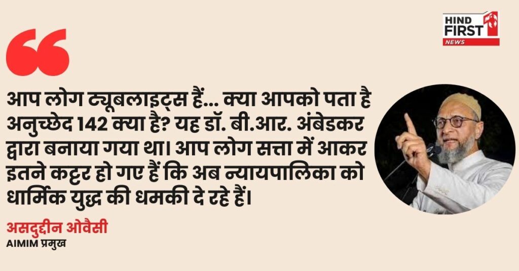 : असदुद्दीन ओवैसी ने कहा कि “BJP इतनी कट्टर हो गई है कि न्यायपालिका को धार्मिक युद्ध की धमकी दे रही है।” उन्होंने अनुच्छेद 142 का हवाला देकर कोर्ट की शक्ति का बचाव किया। AAP: आप नेत्री प्रियंका कक्कड़ ने सुप्रीम कोर्ट से स्वत: संज्ञान लेकर दुबे के खिलाफ अवमानना कार्यवाही और जेल की माँग की। उन्होंने कहा कि BJP अनुकूल फैसले पर जज को राज्यसभा भेजती है, लेकिन असहमति पर कोर्ट को बदनाम करती है।