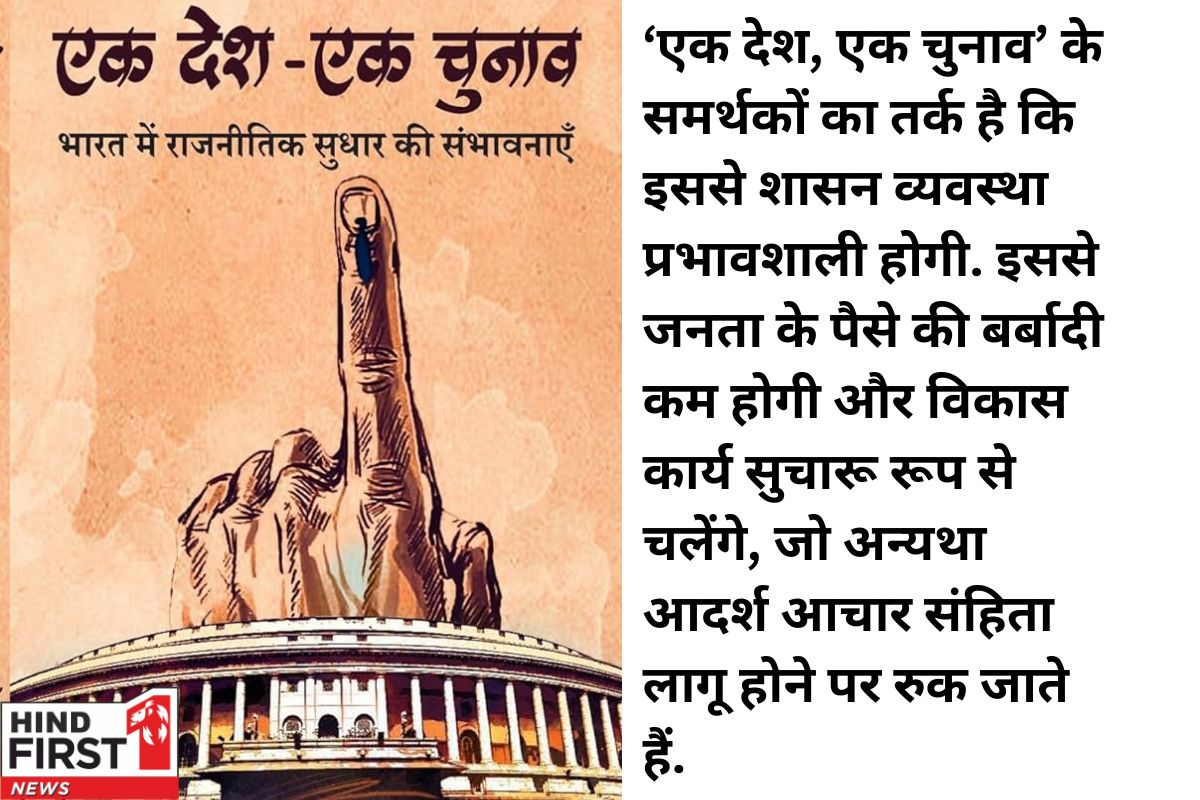 ‘एक देश, एक चुनाव’ (what is one nation one election) की जरूरत पर चर्चा करते हुए संसदीय समिति ने अनुमान लगाया कि लोकसभा और विधानसभा चुनाव कराने में निर्वाचन आयोग 4,500 करोड़ रुपये से ज्यादा खर्च करता है। यह खर्च उम्मीदवारों और राजनीतिक दलों के घोषित और अघोषित खर्च के अलावा है। बीजेपी का तर्क है कि एक साथ चुनाव कराने से खर्च में कमी आएगी और आदर्श आचार संहिता चुनाव से पहले सरकारों को नई नीतियां बनाने या परियोजनाएं शुरू करने से नहीं रोकेगी। इस संबंध में, अगस्त 2018 में विधि आयोग ने पंचायत से लेकर लोकसभा तक सभी चुनाव एक साथ कराने की ड्राफ्ट रिपोर्ट पेश की, जिसमें बताया गया कि इसके लिए कई कानूनों और संविधान में बदलाव की जरूरत होगी। सितंबर 2023 में, सरकार ने पूर्व राष्ट्रपति रामनाथ कोविंद की अध्यक्षता में एक उच्च स्तरीय समिति बनाने की घोषणा की। इस समिति ने मार्च 2024 में 18,000 पन्नों की सिफारिशें राष्ट्रपति को सौंपी। इस समिति में कई प्रमुख सदस्य शामिल थे, जैसे केंद्रीय गृह मंत्री अमित शाह, केंद्रीय विधि मंत्री अर्जुन राम मेघवाल, लोकसभा में कांग्रेस के पूर्व नेता अधीर रंजन चौधरी, राज्यसभा में विपक्ष के पूर्व नेता गुलाम नबी आजाद, 15वें वित्त आयोग के अध्यक्ष एनके सिंह, संविधान विशेषज्ञ डॉ. सुभाष कश्यप, सुप्रीम कोर्ट के वकील हरीश साल्वे, और पूर्व चीफ विजिलेंस कमिश्नर संजय कोठारी।