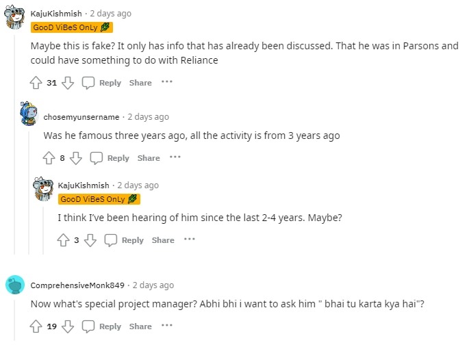 एक गुमनाम Reddit उपयोगकर्ता का कमेंट हाल ही में सामने आया है जिसमे उन्होंने ओरी की लिंकडिन प्रोफ़ाइल साझा की। लिंकडिन प्रोफाइल के मुताबिक, ओरी ने छह साल से ज्यादा समय तक रिलायंस इंडस्ट्रीज लिमिटेड में 'स्पेशल प्रोजेक्ट मैनेजर' का पद संभाला है और वह अभी भी इस पद पर बने हुए हैं। इसके अलावा प्रोफ़ाइल से ग्राफिक डिजाइनर के रूप में करियर बनाने में ओरी की रुचि का पता चला।