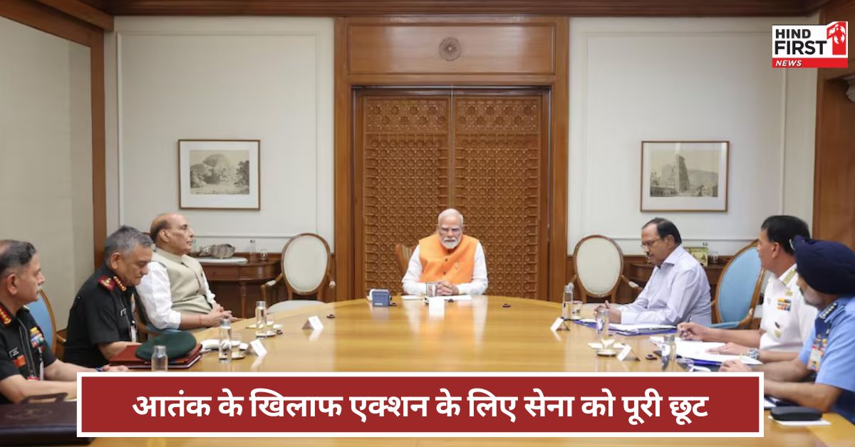 कश्मीर के पहलगाम में आतंकी हमले के बाद भारत सरकार ने आतंक के खिलाफ कड़े एक्शन को लेकर काम शुरु कर दिया है। मंगलवार को प्रधानमंत्री नरेंद्र मोदी ने हाईलेवल मीटिंग भी की। इस मीटिंग में NSA अजीत डोभाल के अलावा तीनों सेनाओं के प्रमुख भी शामिल हुए। बैठक के बाद न्यूज एजेंसी के जरिए सामने आया कि प्रधानमंत्री नरेंद्र मोदी ने आतंक के खिलाफ एक्शन के लिए सेना को पूरी छूट देने की बात कही है। इसके बाद अब आतंक के खिलाफ कभी भी कड़ा एक्शन देखने को मिल सकता है।