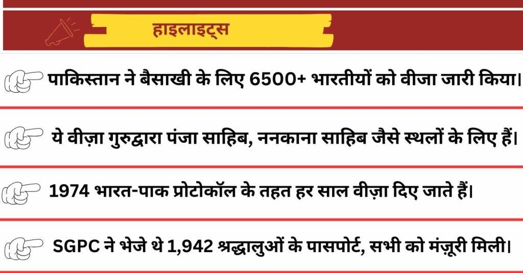 पाकिस्तान ने बैसाखी के लिए 6,500+ भारतीय श्रद्धालुओं को वीजा दिया, यह 1974 के धार्मिक प्रोटोकॉल के तहत सांस्कृतिक सहयोग का संकेत है।