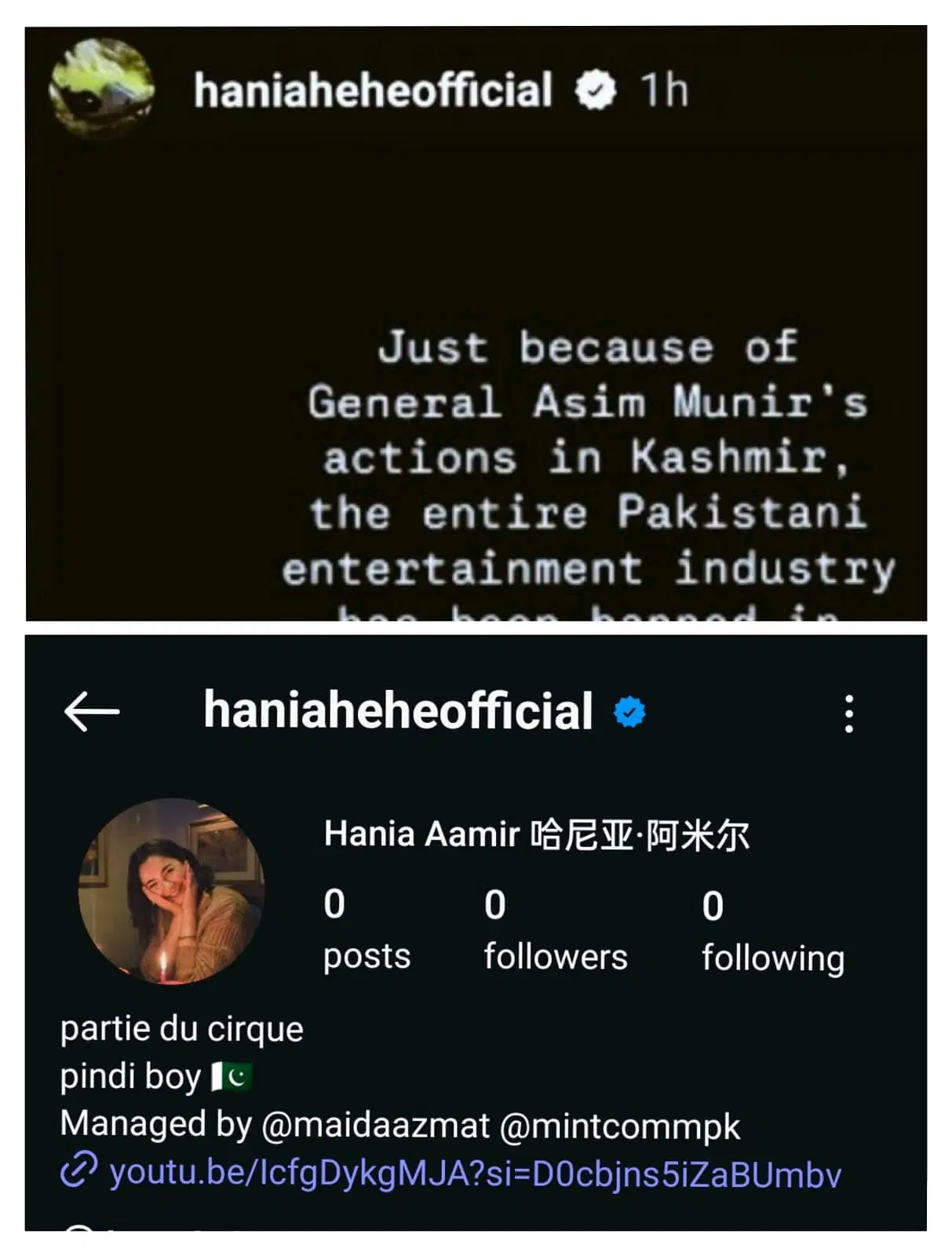 इंडिया में इंस्टाग्राम अकाउंट बैन होने के बाद हानिया की स्टोरी वायरल