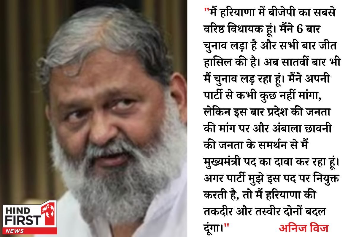 Haryana Election 2024: बीजेपी नेता अनिल विज ने ठोका CM पद पर दावा, कहा- मैं सीनियर हूं…