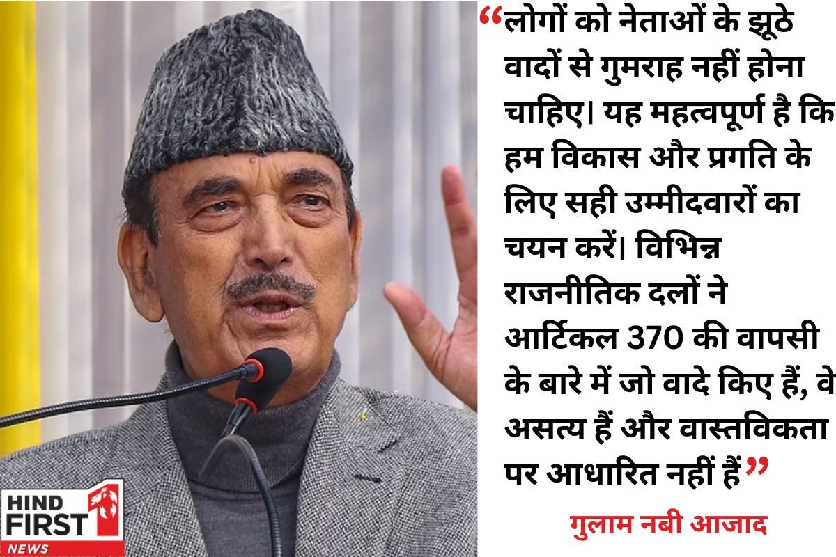 आजाद ने चुनाव प्रचार के अंतिम दिन जम्मू में आयोजित विभिन्न रैलियों में अपने विचार साझा किए। उन्होंने कहा, “लोगों को नेताओं के झूठे वादों से गुमराह नहीं होना चाहिए। यह महत्वपूर्ण है कि हम विकास और प्रगति के लिए सही उम्मीदवारों का चयन करें।” उन्होंने यह भी बताया कि विभिन्न राजनीतिक दलों ने आर्टिकल 370 की वापसी के बारे में जो वादे किए हैं, वे असत्य हैं और वास्तविकता पर आधारित नहीं हैं।