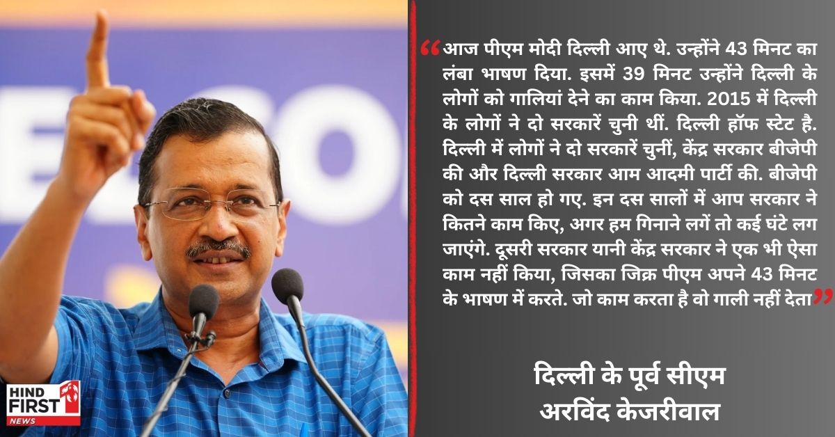 इस पर केजरीवाल ने जवाब दिया, "प्रधानमंत्री ने 43 मिनट तक भाषण दिया और उसमें से 39 मिनट सिर्फ दिल्ली के लोगों को गालियाँ देने में बर्बाद कर दिए।" केजरीवाल ने यह भी कहा कि 2015 में दिल्ली की जनता ने बीजेपी और आम आदमी पार्टी दोनों को चुना था। एक तरफ केंद्र सरकार थी, दूसरी तरफ दिल्ली सरकार थी। केजरीवाल का कहना था कि दिल्ली सरकार ने बहुत सारे काम किए हैं, लेकिन मोदी सरकार ने एक भी ऐसा काम नहीं किया जिसका जिक्र वह अपने भाषण में कर रहे थे।