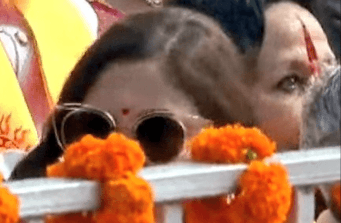 इन सबके बीच ये भी बताया जा रहा है कि राम मंदिर में अनुष्का शर्मा को स्पॉट किया गया है। जिसमें ये बताया जा रहा है कि एक औरत का आधा सिर दिख रहा जिसमें काला चश्मा पहना है। यूजर्स इस तस्वीर को देख कर ये दावा कर रहे हैं वहां अनुष्का शर्मा मौजूद थी। पर कुछ का यह भी कहना है कि ये झूठ है।