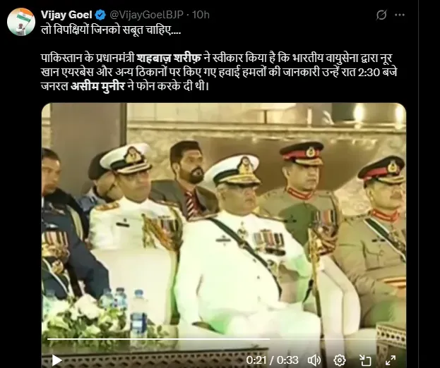 दरअसल शहबाज शरीफ अपने भाषण में सीधे तौर पर नूर खां एयरबेस पर हुए बैलेस्टिक मिसाइल हमले को कबूलते नज़र आए। साथ ही अपने भाषण में यह भी दावा किया कि पाकिस्तानी वायुसेना ने स्वदेशी तकनीक और चीनी लड़ाकू विमानों से देश को बचाया।लेकिन सच्चाई यह है कि भारतीय मिसाइलों ने नूर खान एयरबेस समेत कई सैन्य लक्ष्यों को ध्वस्त किया था।पाकिस्तानी प्रधानमंत्री का यह बयान उस रणनीतिक हार को छिपाने की कोशिश भर है, जिसमें उनकी सेना भारत की जवाबी कार्रवाई के आगे बेबस नजर आई। खास बात यह है कि शहबाज ने जिस आत्मविश्वास भरी आवाज का जिक्र किया, वह दरअसल पाकिस्तानी प्रतिष्ठान के आतंकवादी पोषण की नीति पर पड़े प्रहार की गूंज थी।To be as clueless as this man when terror airbases under his control are being destroyed by India. Deeply satisfying. pic.twitter.com/8HzCQw2M0N