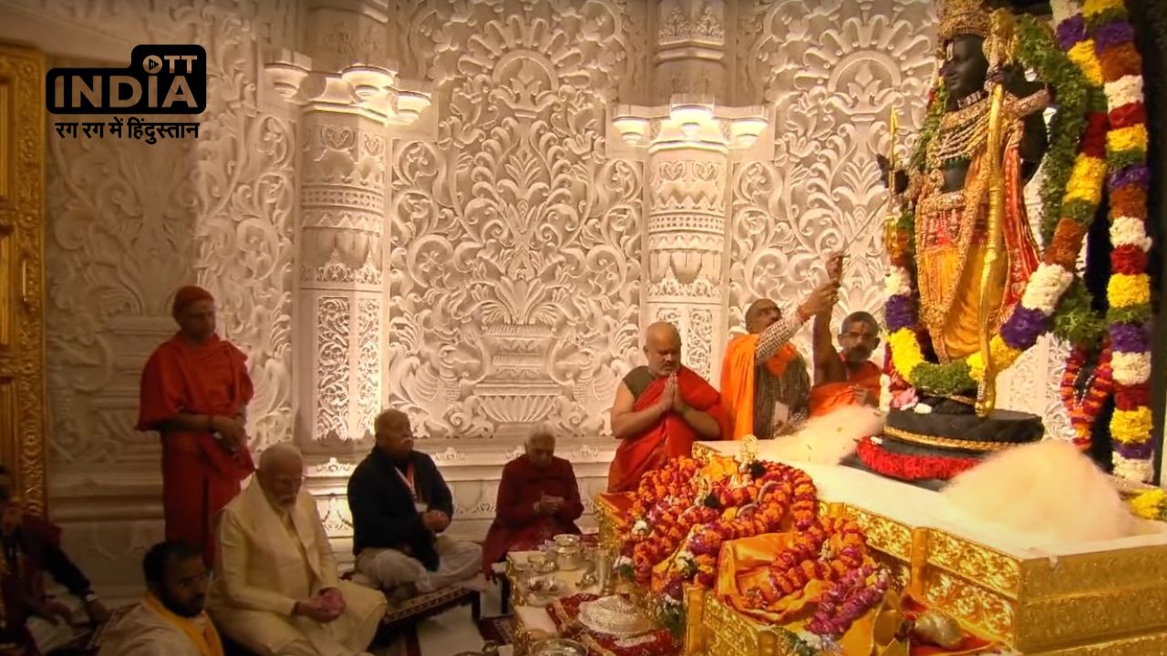 Ram Mandir Live Update: अयोध्या श्रीराम जन्मभूमि मंदिर में सोमवार 22 जनवरी को रामलला की प्राण प्रतिष्ठा हो गई है। जिसके बाद से भव्य राम मंदिर में प्रभु विराजमान होकर अपने भक्तों को दर्शन देगें। प्राण प्रतिष्ठा समारोह में शामिल होने प्रधानमंत्री नरेंद्र मोदी अयोध्या पहुंचे थे। इस विशेष समारोह में 7000 से अधिक अतिथियों को आमंत्रित किया गया था। राम मंदिर (Ram Mandir) प्राण प्रतिष्ठा से पहले पूरे अयोध्या नगर को भव्य तरीके से सजाया गया था। हर तरफ सुरक्षा व्यवस्था चाक चौबंद है। हर एक चौराहे पर अयोध्या में कमांडोज की तैनाती की गई है। OTT INDIA पर पढ़े सबसे पहले राम मंदिर से जुड़ी अपडेट...