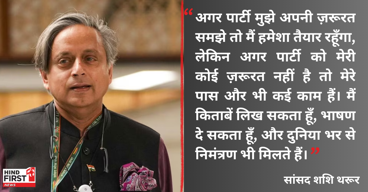 शशि थरूर ने कांग्रेस पार्टी को साफ संदेश दिया है कि अगर पार्टी उन्हें अपनी ज़रूरत समझे तो वो हमेशा तैयार रहेंगे, लेकिन अगर पार्टी को उनकी कोई ज़रूरत नहीं है तो उनके पास और भी कई काम हैं। थरूर ने कहा कि कांग्रेस को ये नहीं सोचना चाहिए कि उनके पास कोई और विकल्प नहीं हैं। उनके पास किताबें, भाषण और दुनिया भर से मिलने वाले निमंत्रण हैं। इसका मतलब है कि थरूर के पास कांग्रेस के अलावा भी अपने लिए कई रास्ते खुले हैं, लेकिन इसके साथ ही सियासी हलकों में कुछ कयास भी लगाए जा रहे हैं।
