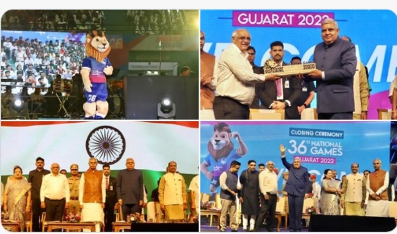 उपराष्ट्रपति जगदीश धनखड़ ने कहा, "गुजरात की राष्ट्रीय खेलों की शानदार मेजबानी ने ओलंपिक की मेजबानी के लिए हमारी बोली को मजबूत किया है।" गुजरात के सूरत शहर में एक भव्य समारोह में बुधवार को 36वें नेशनल गेम्स का समापन हुआ। भारत के उपराष्ट्रपति जगदीश धनखड़, लोकसभा अध्यक्ष ओम बिरला, गुजरात के राज्यपाल आचार्य देवव्रत, मुख्यमंत्री भूपेंद्र भाई पटेल, खेल मंत्री हर्ष संघवी, कैबिनेट मंत्री मुकेश भाई पटेल, भारतीय ओलंपिक महासंघ के महासचिव राजीव मेहता और अन्य गणमान्य व्यक्ति समारोह में उपस्थित थे।