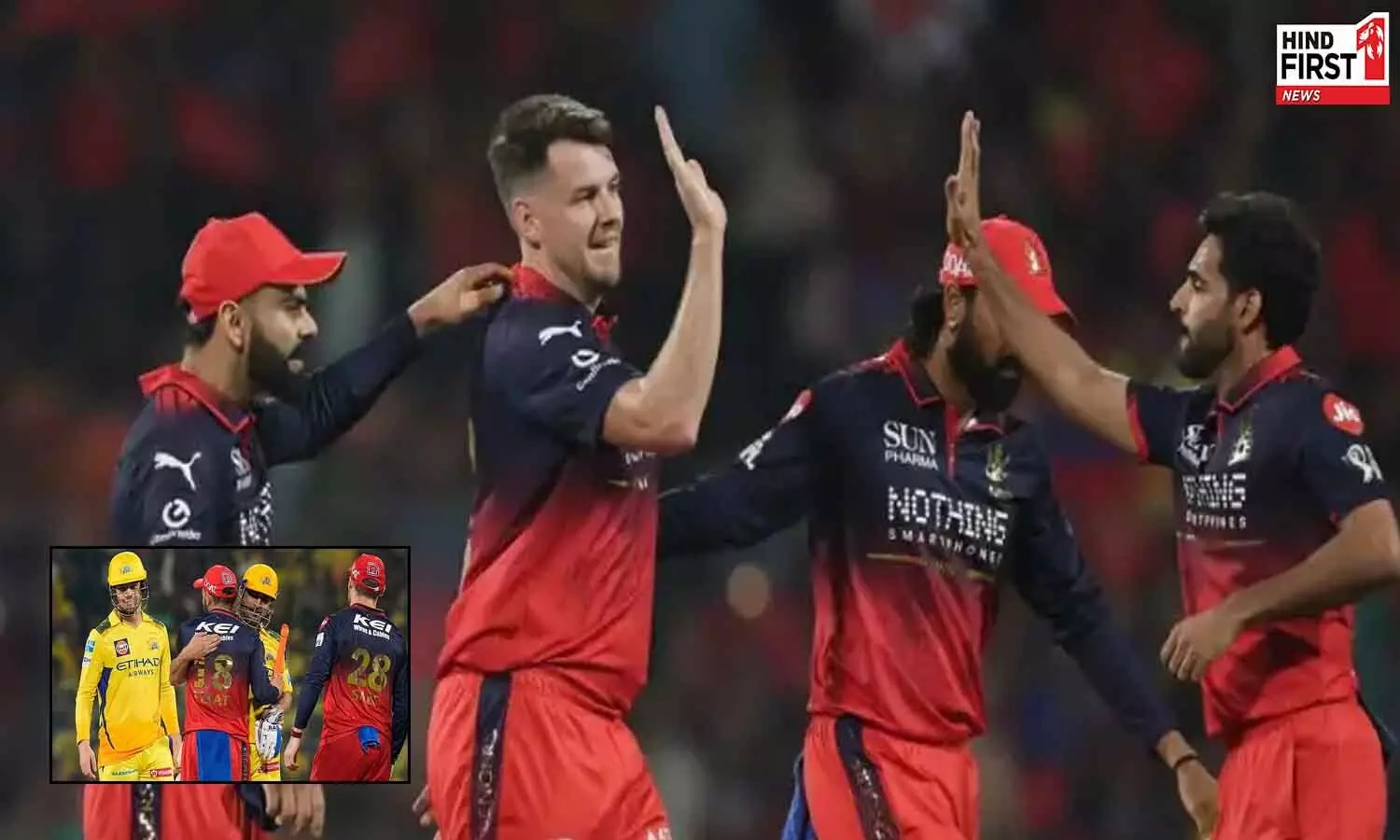 इस मुकाबले में रॉयल चैलेंजर्स बेंगलुरु की टीम के बल्लेबाज़ों का दबदबा देखने को मिला। आरसीबी ने पहले बल्लेबाज़ी करते हुए चेन्नई के सामने 250 रनों का विशाल स्कोर बनाया। इस मैच में आरसीबी के लिए पहले फिल सॉल्ट ने 30 गेंदों में 46 रन बनाए। उनके बाद पडीक्कल ने महज 29 गेंदों का सामना करते हुए 50 रन बनाए। इसके बाद टिम डेविड का तूफ़ान देखने को मिला। डेविड ने मात्रा 25 गेंदों पर नाबाद 70 रन बनाए।