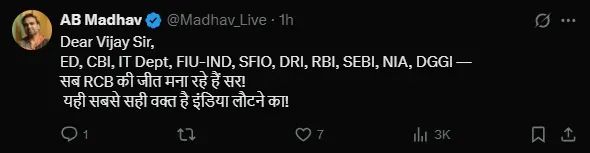 यह पहली बार नहीं है जब माल्या ने RCB की सफलता पर भावुक होकर पोस्ट किया, लेकिन इस बार उनकी "विजय" बधाई को लेकर चर्चा का अंदाज़ कुछ अलग है। 2016 में देश छोड़कर भागे माल्या पर भारत में 9000 करोड़ रुपये से ज़्यादा के बैंक डिफॉल्ट के मामले चल रहे हैं। सुप्रीम कोर्ट ने उन्हें "भगोड़ा" घोषित करते हुए जेल की सजा भी सुनाई है। ऐसे में, नेटिज़न्स का यह सवाल जायज़ लगता है कि "क्या RCB की जीत के बाद माल्या का भारत लौटने का कोई प्लान है?" अगर नहीं, तो फिर उनका यह पोस्ट सिर्फ़ एक और "हॉलीडे ट्वीट" ही माना जाएगा, जिसे भारत की जनता ने अपने अंदाज़ में सेलिब्रेट कर लिया!