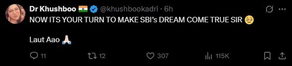 यही सही मौका है आपके स्वदेश लौटने का!" किसी ने SBI के हवाले से कहा कि "इसी बहाने थोड़ा टाइम निकालकर बैंक ब्रांच आ जाइए। तो किसी ने ट्रोल करते हुए पूछा कि क्या RCB की जीत का क्रेडिट लेने से पहले आपने बैंकों से परमिशन ले ली?