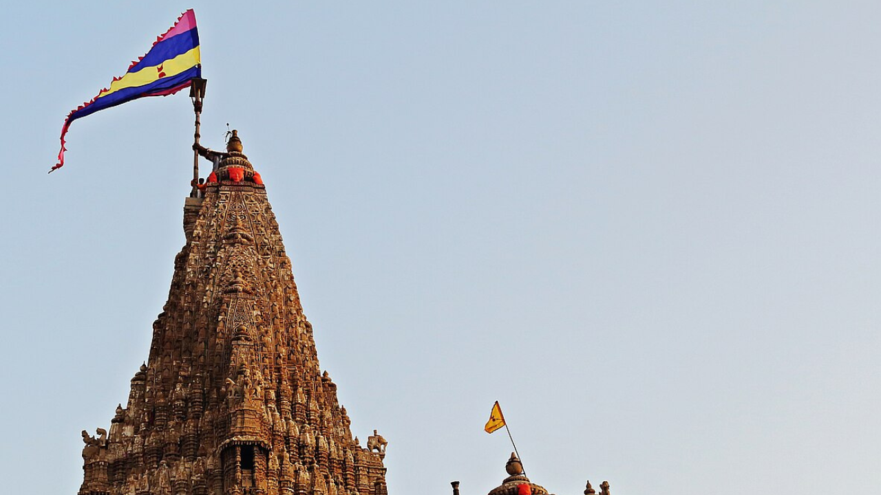 गुजरात का द्वारकाधीश मंदिर दुनिया भर में अपनी सदियों पुरानी परंपरा के लिए जाना जाता है, जिसमें दिन में पांच बार खूबसूरती से बना झंडा फहराया जाता है। रेशम से बने इस झंडे पर श्री कृष्ण के निशान बने होते हैं, और हर झंडा भक्त दान करते हैं, क्योंकि उन्हें लगता है कि यह उनकी मनोकामना पूरी करता है।