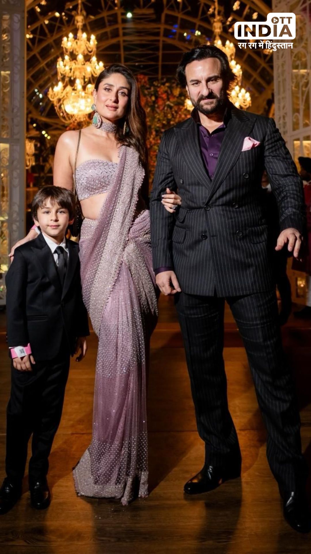 अनंत अंबानी और राधिका मर्चेंट के प्री-वेडिंग (Anant-Radhika Pre wedding) समारोह में सैफ अली खान अपनी पत्नी करीना कपूर खान और बेटे तैमूर खान के साथ पहुंचे। जहां करीना कपूर शिमरी साड़ी में सुंदर दिखी, तो ब्लैक सूट में सैफ अली का लुक कमाल का था।