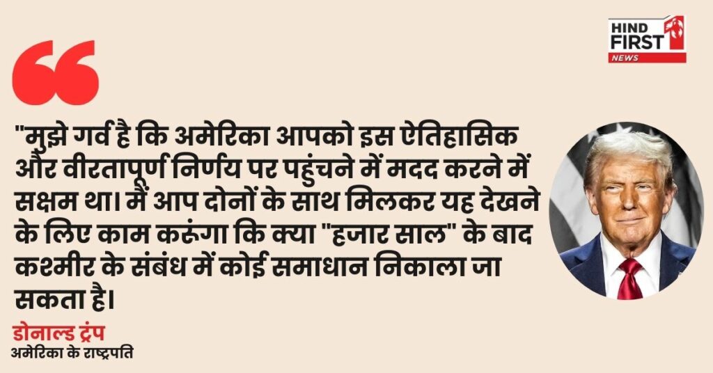 ट्रंप ने अपने बयान में कहा कि वह कश्मीर के हजारों साल पुराने मुद्दे का समाधान निकालने में मदद करेंगे। यह उनकी 2019 की उसी पेशकश को दोहराना है जब उन्होंने भारत-पाकिस्तान के बीच मध्यस्थता की इच्छा जताई थी। उल्लेखनीय है कि भारत ने तब स्पष्ट कर दिया था कि कश्मीर भारत का अभिन्न अंग है और यह कोई द्विपक्षीय मुद्दा नहीं है। विदेश मंत्रालय ने बार-बार कहा है कि कश्मीर मामले पर किसी तीसरे पक्ष की भूमिका स्वीकार्य नहीं है।