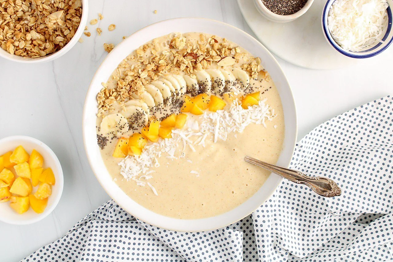 मूंग दाल चीला प्रोटीन से भरपूर होती है, जिसे भिगोई हुई और ब्लेंड की हुई मूंग दाल से बनाया जाता है। इसे और भी पौष्टिक बनाने के लिए बैटर में पालक, टमाटर और प्याज जैसी कटी हुई सब्ज़ियां डालें। इसे कम से कम तेल में पकाएं और ताज़गी के लिए पुदीने-धनिया की चटनी के साथ परोसें। यह हाई-प्रोटीन, लो-फ़ैट ब्रेकफ़ास्ट विकल्प पेट के लिए हल्का है और निरंतर ऊर्जा प्रदान करता है। यह उन लोगों के लिए एकदम सही है जो गर्मियों में फिट और सक्रिय रहना चाहते हैं।ओट्स स्मूदी बाउल