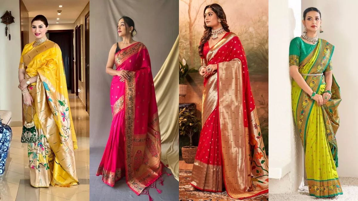 यह दक्षिण भारतीय रेशम की साड़ी अपनी चमकदार बनावट, बोल्ड रंगों और मंदिर के बॉर्डर डिज़ाइन के लिए जानी जाती है। लाल या पीले रंग की कांजीवरम पहनने से वैवाहिक सुख और समृद्धि बढ़ती है। Navratri Celebration: चैत्र नवरात्रि के पहले दिन पहनें ये पांच तरह की साड़ियां, दिखेंगी मां दुर्गा का रूप पैठणी साड़ी – जटिल मोर और फूलों की आकृति वाली एक महाराष्ट्रीयन रेशम की साड़ी, यह संस्कृति और लालित्य का प्रतिनिधित्व करती है। इसके जीवंत रंग इसे नवरात्रि समारोहों के लिए आदर्श बनाते हैं। Navratri Celebration: चैत्र नवरात्रि के पहले दिन पहनें ये पांच तरह की साड़ियां, दिखेंगी मां दुर्गा का रूप बांधनी साड़ी - एक पारंपरिक गुजराती और राजस्थानी टाई-डाई साड़ी, पीले, लाल या हरे रंग की बांधनी साड़ियां उत्सव का माहौल लाती हैं, जो खुशी और सौभाग्य का प्रतीक हैं।