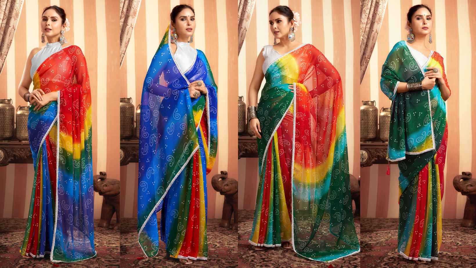 बनारसी सिल्क, कांजीवरम, पैठनी, बांधनी और चंदेरी सिल्क जैसी साड़ियां आदर्श विकल्प हैं, जिनमें से प्रत्येक परंपरा, संस्कृति और शालीनता का प्रतिनिधित्व करती हैं।