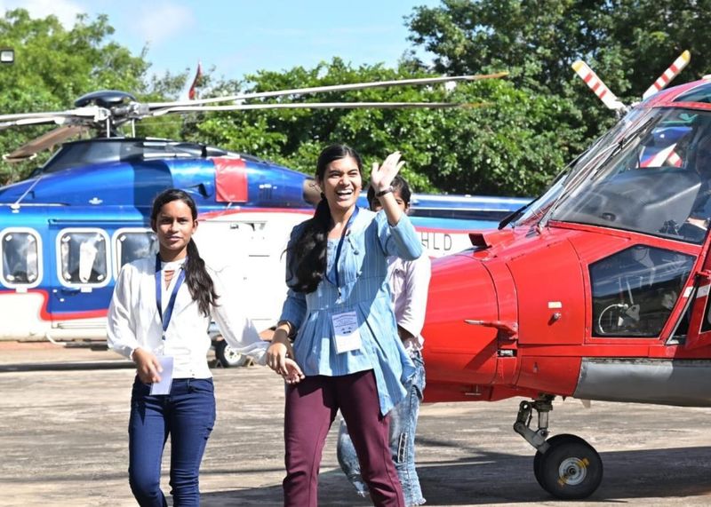 The group of students after their ride said, "We felt really good, it was for the first time that we had a helicopter ride. Other students will also be encouraged to perform well in their studies. Our parents were excited too, say students who were taken on a helicopter ride."