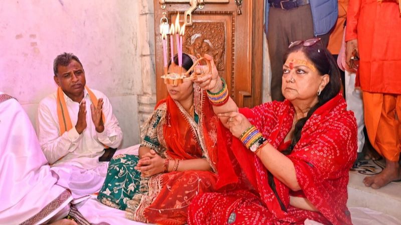 पूर्व सीएम राजे का जगह-जगह सड़क पर स्वागत हुआ. बेणेश्वर धाम में जब नदी का पुल पैदल पार करते हुए पहुंची तो मंदिर प्रशासन और भक्तों ने पगड़ी-उपरना पहनाकर स्वागत किया.