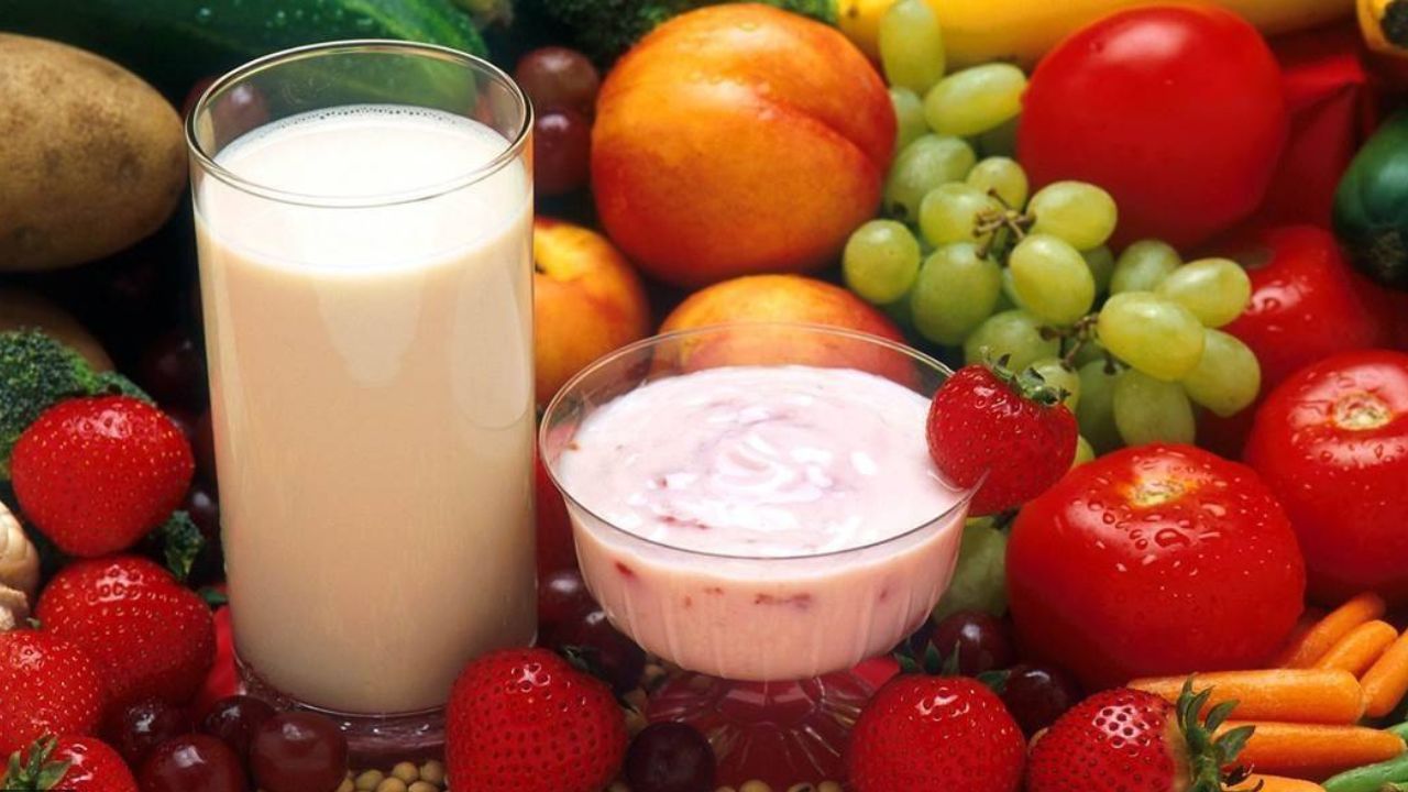 खट्टे फलों के साथ दूध