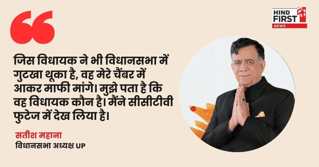 यूपी विधानसभा में विधायक के गुटखा थूकने पर हंगामा, स्पीकर सतीश महाना ने गुटखा-पान मसाला बैन कर उल्लंघन पर ₹1,000 जुर्माने की चेतावनी दी।