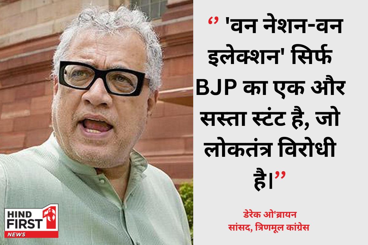 त्रिणमूल कांग्रेस के सांसद डेरेक ओ'ब्रायन ने कहा , "वन नेशन-वन इलेक्शन' सिर्फ BJP का एक और सस्ता स्टंट है, जो लोकतंत्र विरोधी है। महाराष्ट्र के चुनावों की घोषणा हरियाणा और जम्मू-कश्मीर के चुनावों के साथ क्यों नहीं की गई? इसका कारण यह है कि महाराष्ट्र सरकार ने इस जून के बजट में लड़की बहन योजना की घोषणा की।'' उन्होंने कहा, 'और यह भी बताएं कि कितने संविधान संशोधन किए जाएंगे।जिनमें राज्य विधानसभा के कार्यकाल को कम करना या बढ़ाना शामिल है! यह मोदी-शाह का जुमला है।'' समर्थन में नेताओं ने कहा क्या..