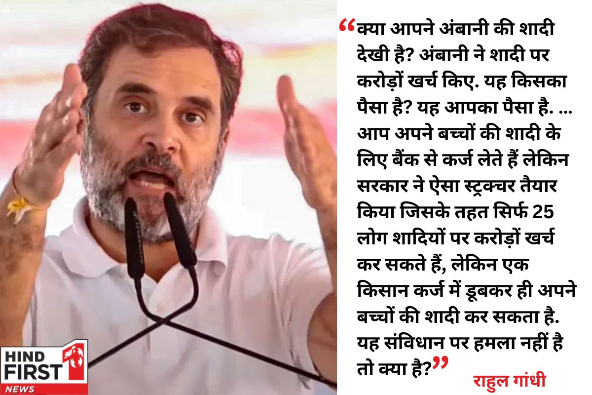 उन्होंने अपनी रैली में कहा, "क्या आपने अंबानी की शादी देखी? अंबानी ने शादी में हजारों करोड़ खर्च किए। यह किसका पैसा है? यह आपका पैसा है।" उनके इस बयान ने न केवल अंबानी परिवार की वित्तीय ताकत को सवालों के दायरे में लाया, बल्कि यह भी दर्शाया कि आम आदमी किस प्रकार आर्थिक दबाव का सामना कर रहा है।राहुल गांधी ने किसानों का उदाहरण देते हुए कहा कि आम लोग अपने बच्चों की शादी के लिए बैंक से कर्ज लेते हैं, जबकि कुछ लोग इस तरह की भव्य शादियां कर सकते हैं। उन्होंने आरोप लगाया कि सरकार ने ऐसा सिस्टम बनाया है कि केवल 25 लोग ही इतनी महंगी शादियों का खर्च उठा सकते हैं। उन्होंने यह भी कहा, "क्या यह संविधान पर हमला नहीं है?"#WATCH | Speaking at a public rally in Haryana's Bahadurgarh, Congress MP & LoP Rahul Gandhi says,"...Have you seen Ambani wedding? Ambani spent crores on the wedding. Whose money is this? It is your money. ...You take bank loans to marry your children but Narendra Modi ji has… pic.twitter.com/Cqe8KNZPwY